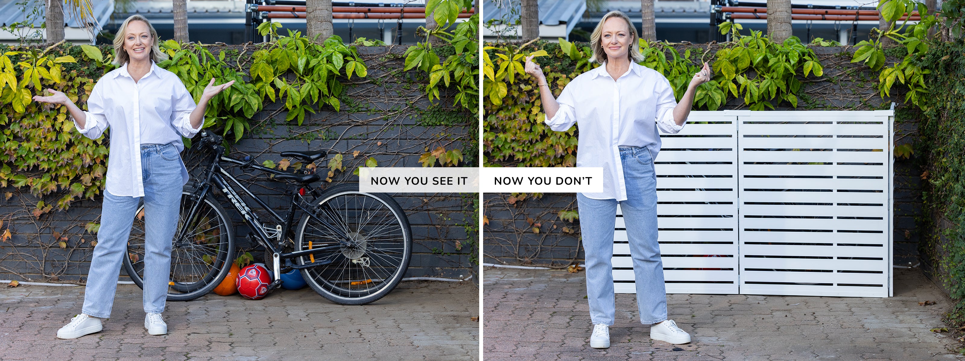 Hide the mess. Elevate your outdoor style. Swipe to see how real homes transform with a little help from Bindi Screening